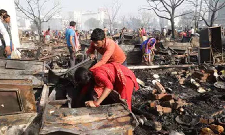 लखनऊ विकास नगर आग: 8 घंटे बाद काबू, दो बच्चों की मौत