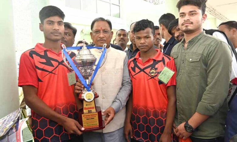 मुख्यमंत्री साय से सॉफ्ट बाल खिलाड़ी साकेत व चंद्रहास ने की मुलाकात
